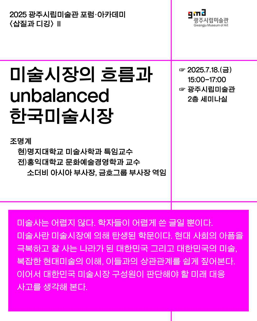 2025 포럼·아카데미 <삽질과 디깅> 미술시장 전문가 조명계 교수 초청