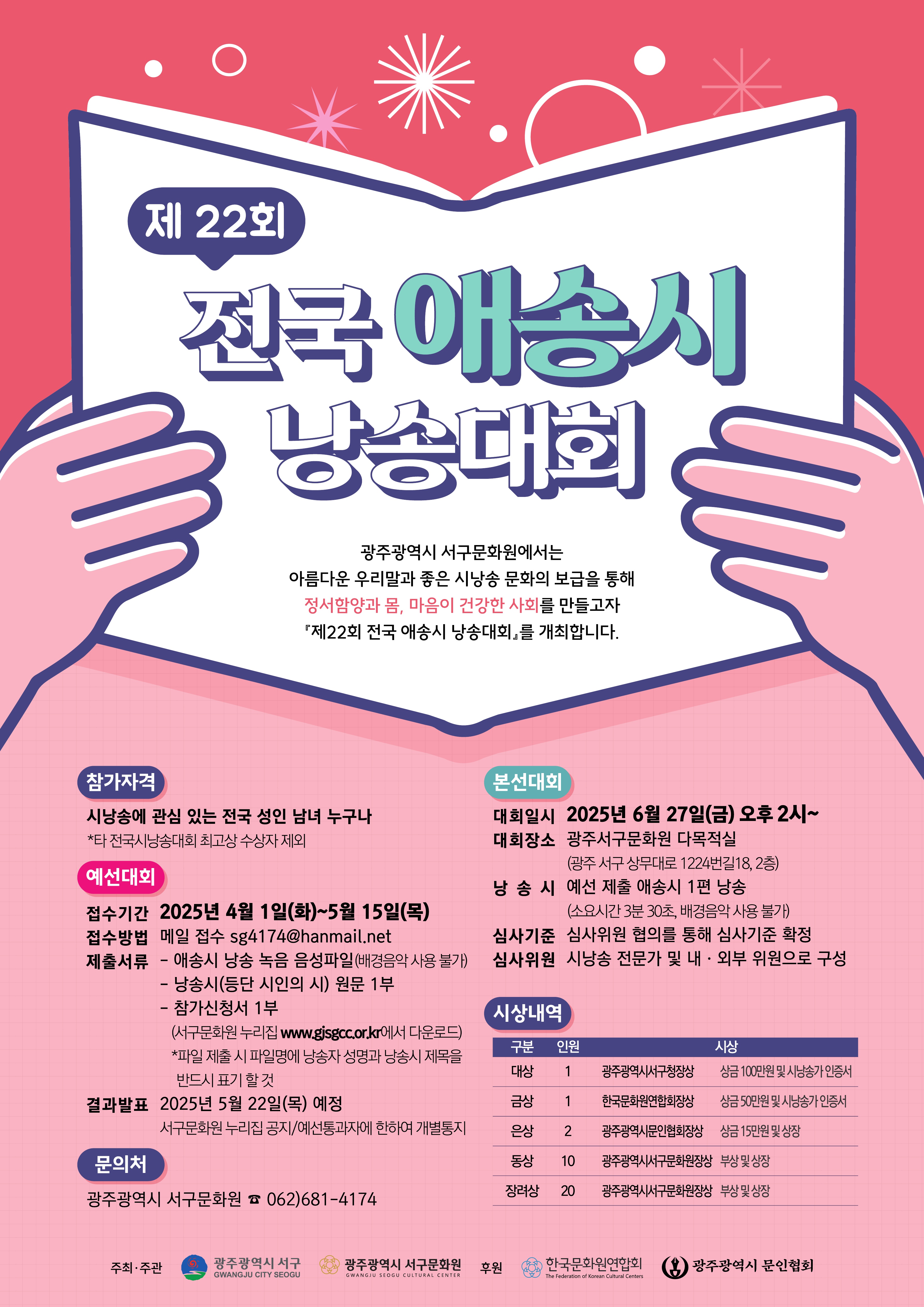 광주 서구문화원만의 독창적인 문화예술교육과 발표의 장은 참가자들의 역량향상에 목적을 두고 있다. 2004년부터 시작된 시낭송 문화 확산을 위한 전국애송시낭송대회, 2011년부터 시작한 문학적 역량과 독서, 인문정신의 함양을 위한 빛고을문예백일장, 2013년부터 아마추어 음악인의 무대 발표 기회를 제공하는 알로하뮤직페스티벌, 2015년부터 펼치고 있는 광주지역 아마추어 연극인들의 땀 흘린 작품의 발표무대인 광주시민연극제, 2019년부터 지역 연극콘텐츠 발굴을 위한 광주광역시창작희곡공모전, 비정기적인 북콘서트 등 다양한 문화예술축제를 통해 지역민의 문화향유와 공감하는 문화 힐링의 장으로서 역할을 수행하고 있다.