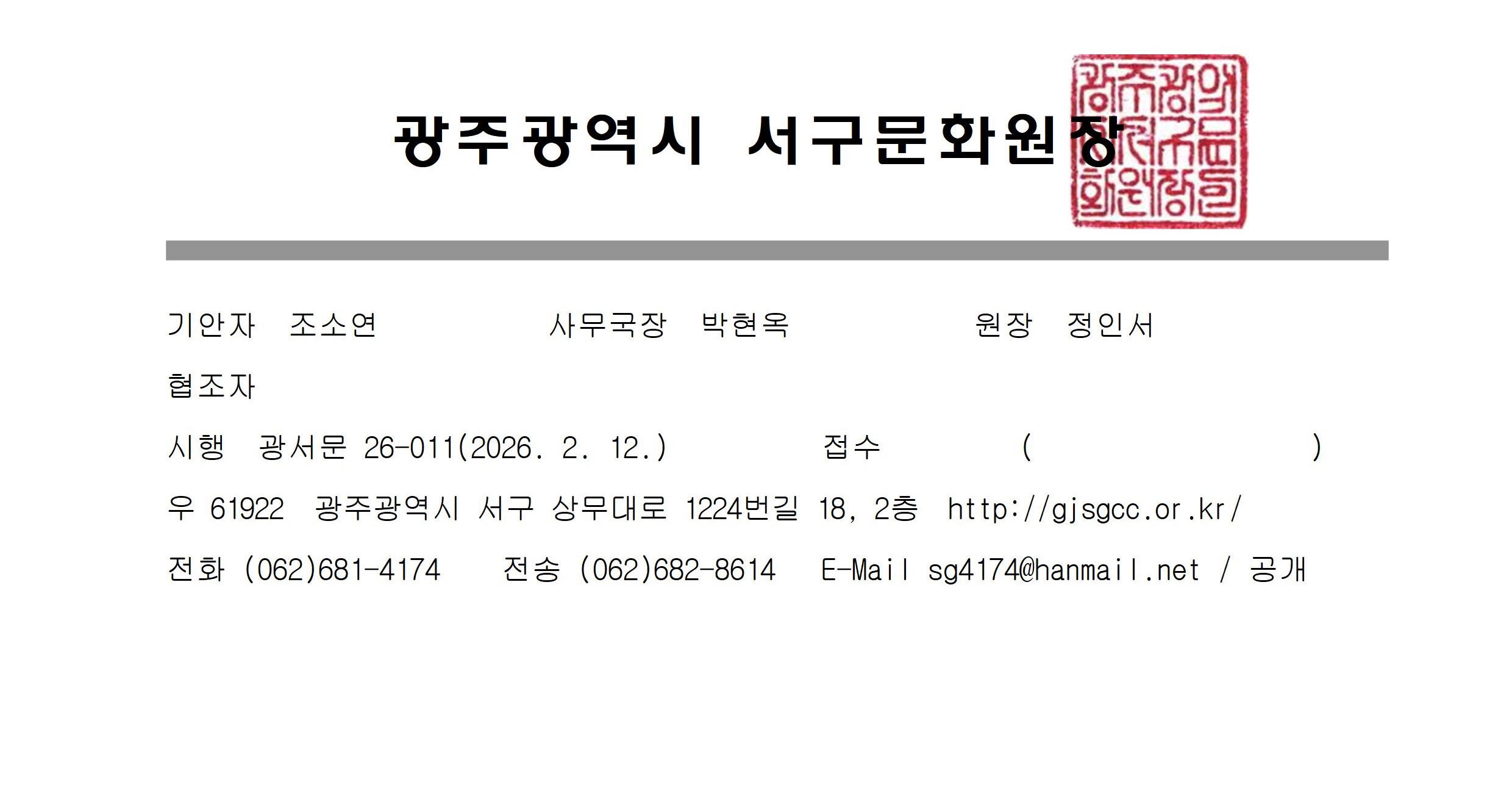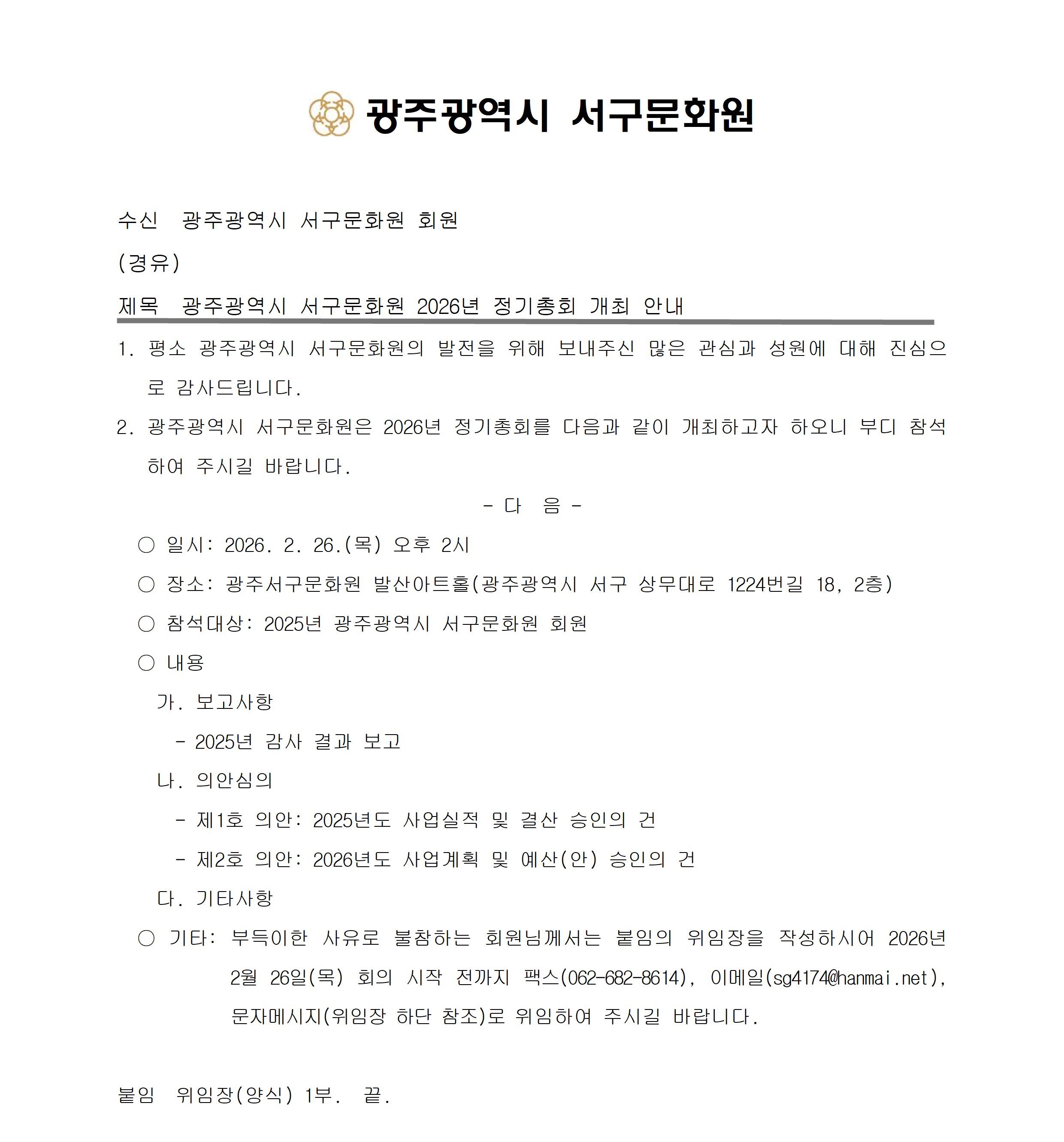 광주광역시 서구문화원 2026년 정기총회 안내