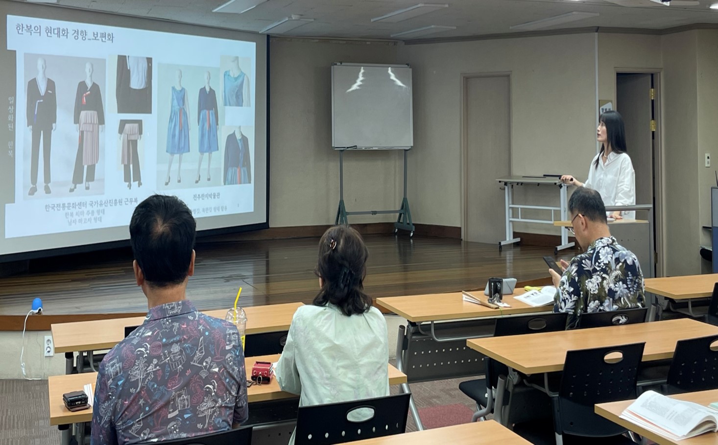 배 강사는 한복의 역사적 변천 과정을 짚으며, 오늘날 한복이 가진 실질적 가치와 문화적 상징성에 대해 설명했다. 그는 한복의 현대화 경향을 ‘보편화’와 ‘고급화’라는 두 흐름으로 구분하고, 두 방향이 균형을 이루어야만 진정한 의미를 가질 수 있음을 강조했다.