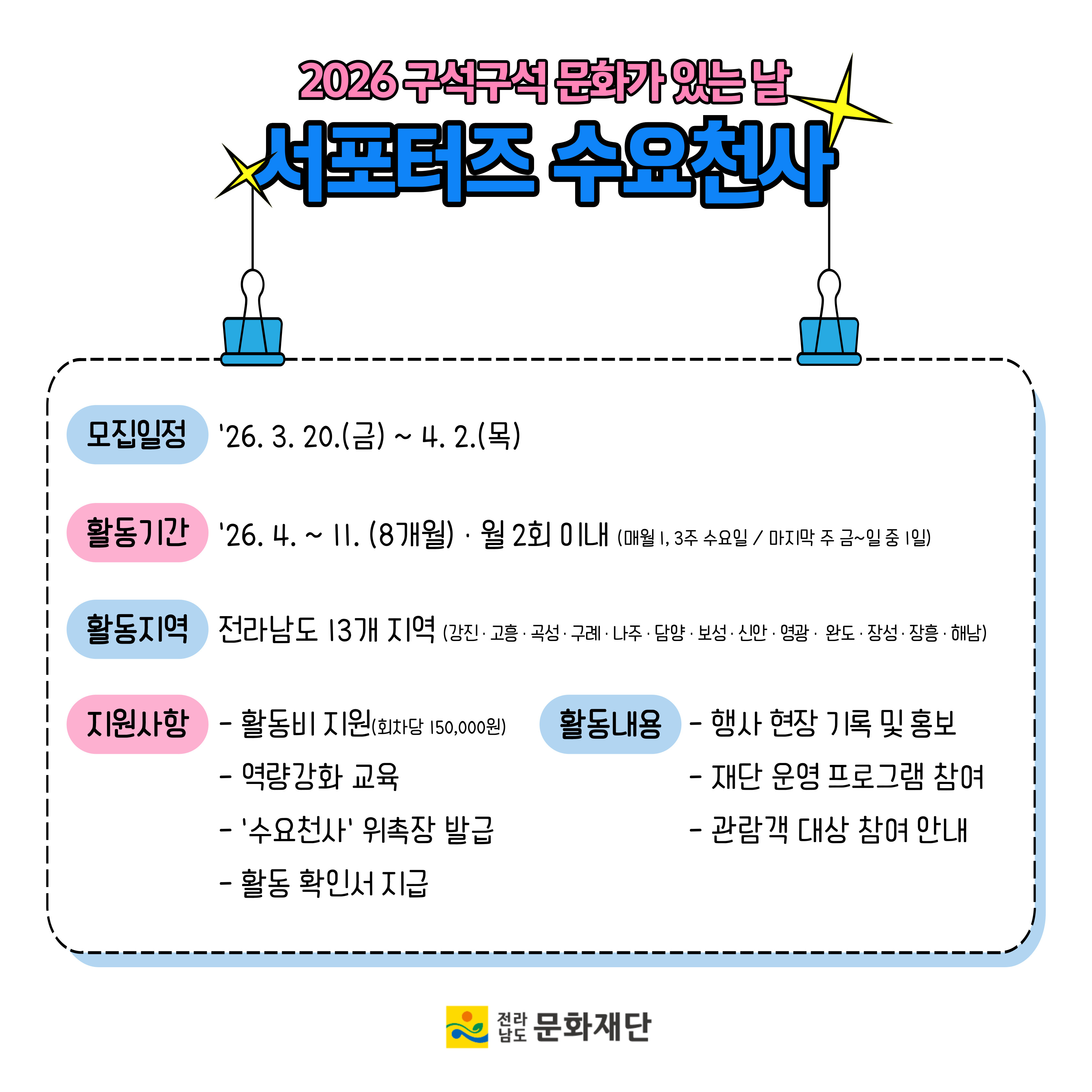 ✨ 2026 구석구석 문화가 있는 날 서포터즈 '수요천사' 모집 시작! ✨